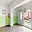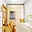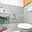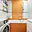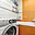 Chodba plynule přechází do kuchyňského prostoru bez dveří. Kuchyně je řešena účelně – kuchyňská linka s varnou deskou a digestoří navazuje na jídelní kout se skříní, jejíž součástí je vestavěná trouba a mikrovlnná trouba. Z této části je vstup do koupelny, která je laděná do oranžovo-bílého obkladu a disponuje vanou a pračkou.