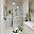 Koupelna – sprchový kout, umyvadlová skříňka se zrcadlem, pračka a sušička, rohová skříňka.